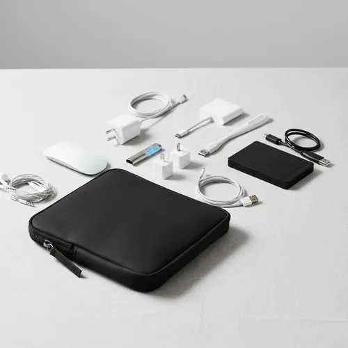 Set 4+ piezas · Funda laptop + accesorios tech · Caja rígida personalizada